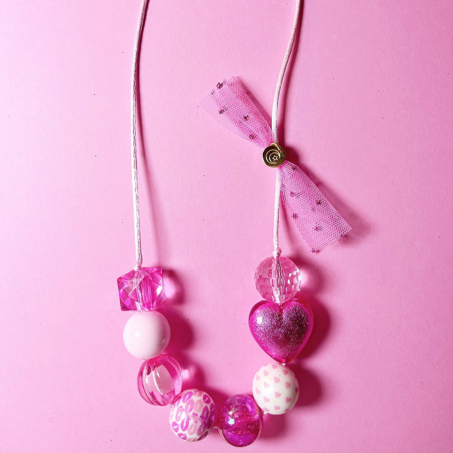 The perfect necklace to jazz up any little girl's outfit! Each necklace comes with clasp snap closure making it super easy for little hands to attach. Soft sparkle tulle bow & a hand stamped gold disc make this necklace as unique as your little babe! Two different styles: Hearts & Lips XOXO