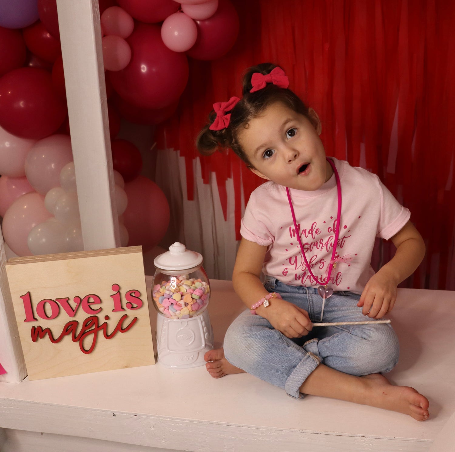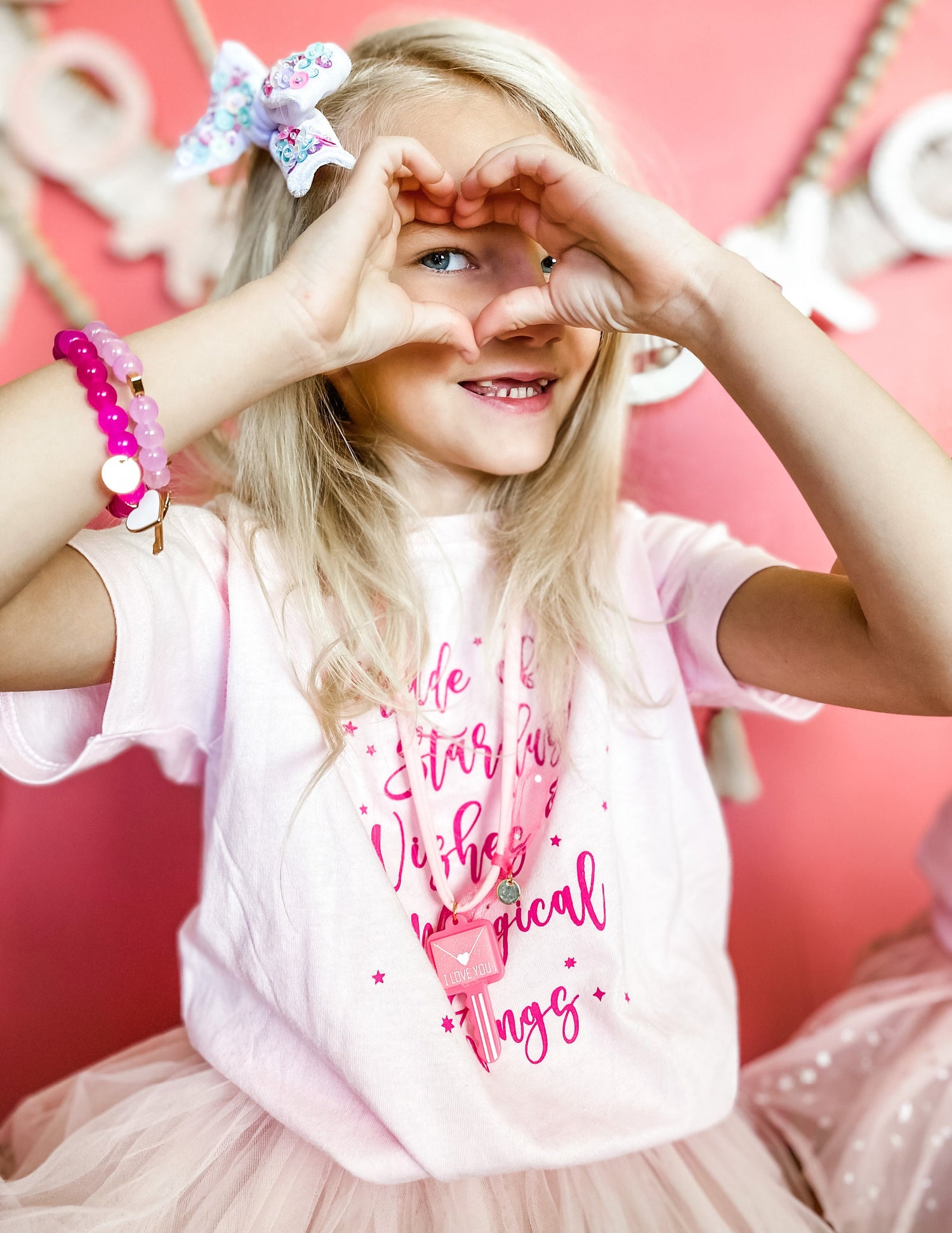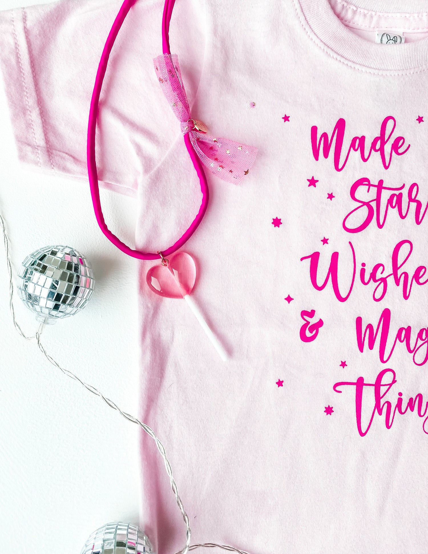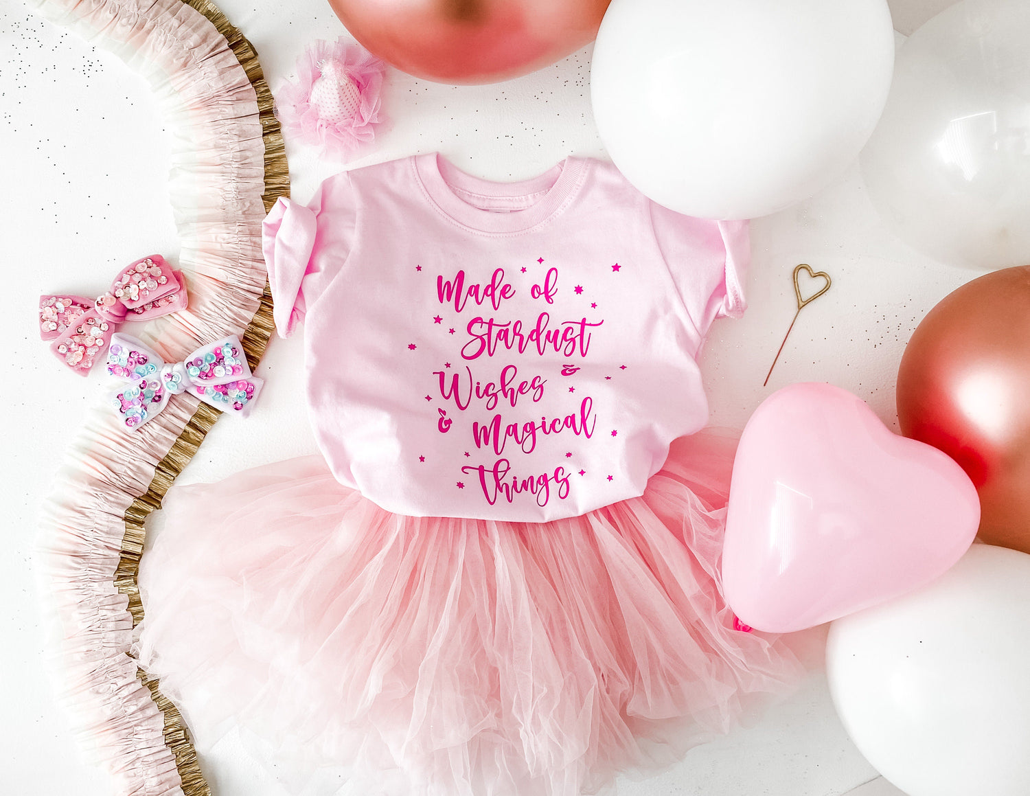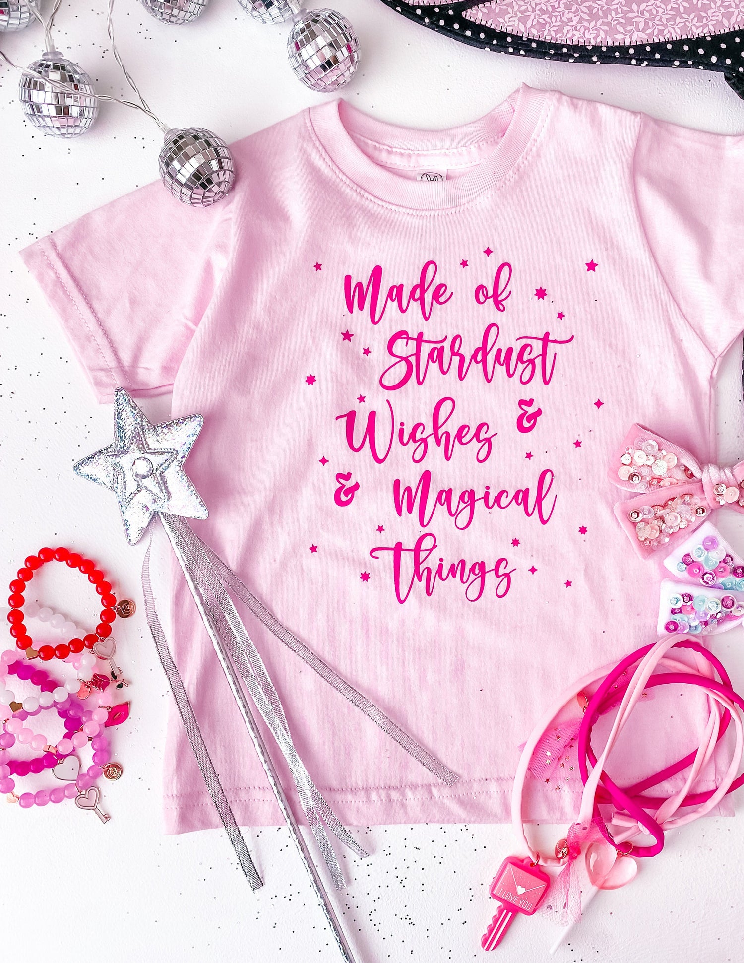 You Are Made of Stardust & Wishes & Magical Things! The saying that started it all for Magical Kids Club! Perfect to wear all year round. Ballerina pink soft cotton tee and gorgeous medium pink font.