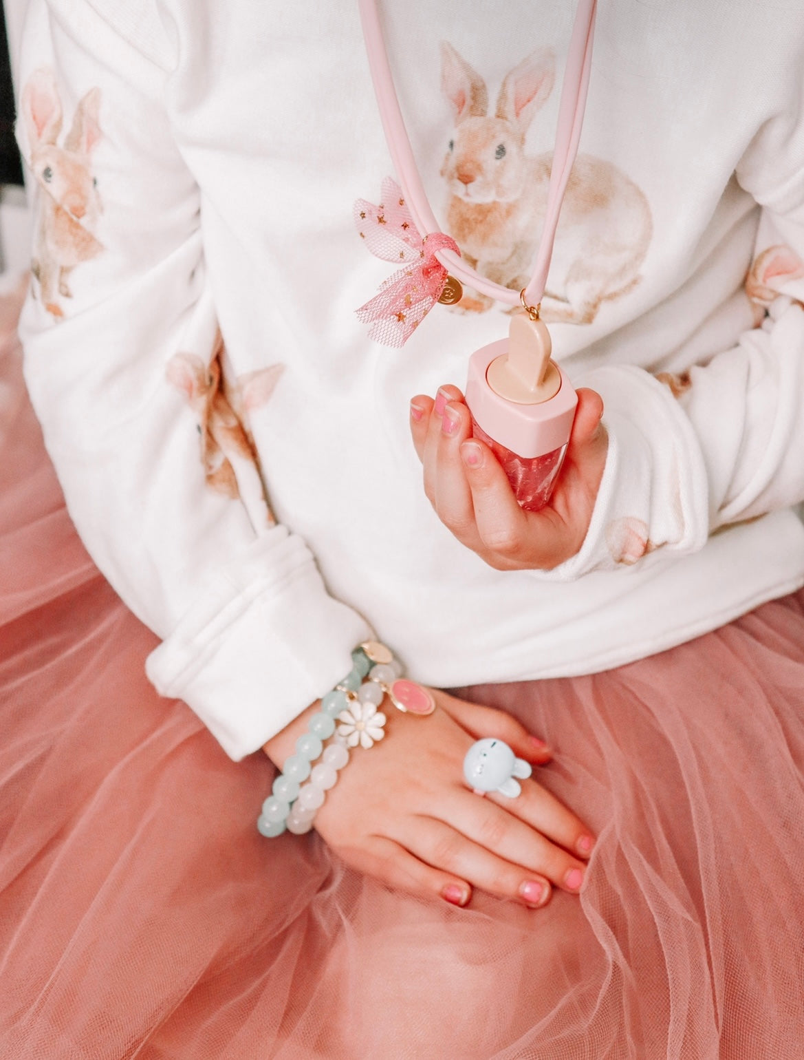 Magic makeup is here! Vegan, gluten-free, cruelty free, sugar free & all natural! These lipgloss necklaces are super moisturizing & feel like a thick lip balm! All food grade ingredients and enhanced with vitamin E. Each necklace is on a super soft light pink adjustable cord and features a soft pink tulle bow with my signature hand stamped gold disc. Doesn’t get any more magical than this! Your little girl will LOVE her Magic Makeup!
